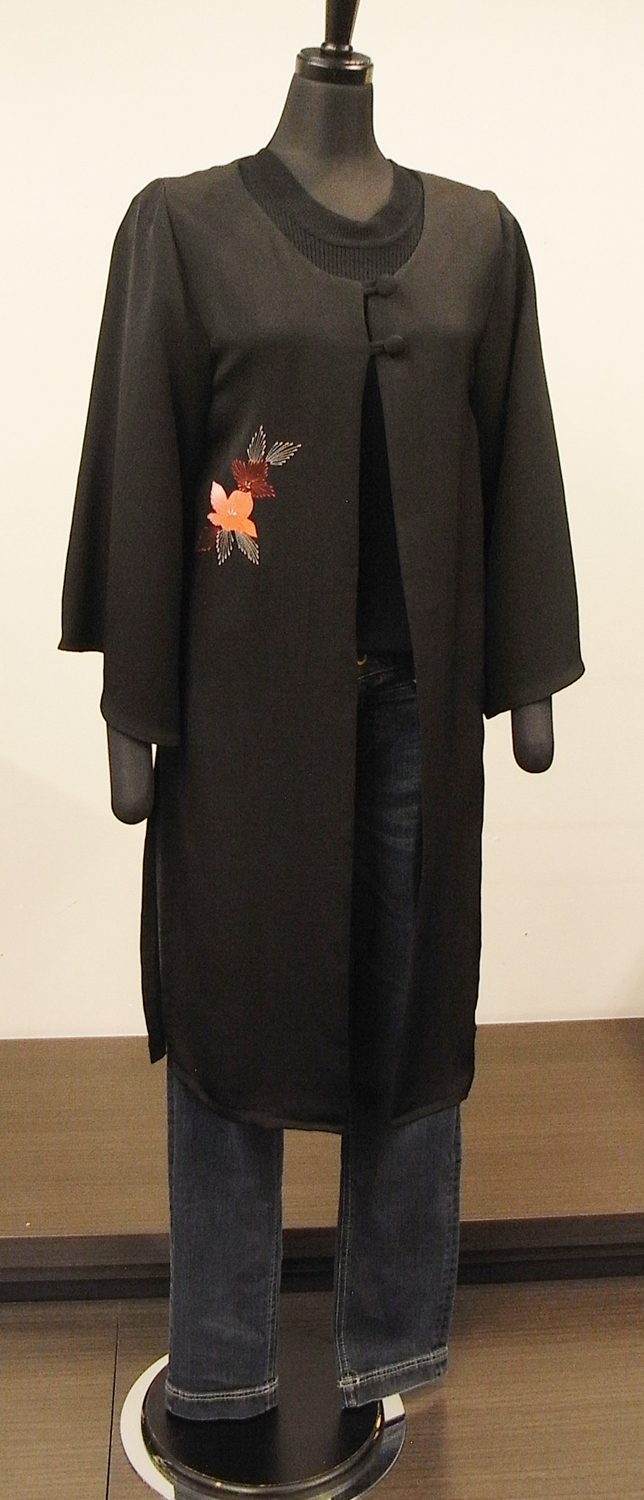 黒絵羽織りをロングジャケットに